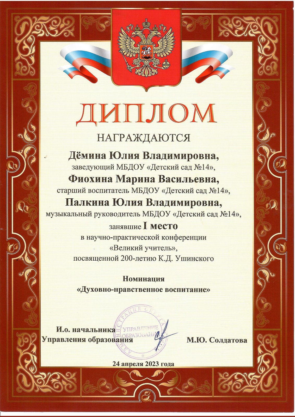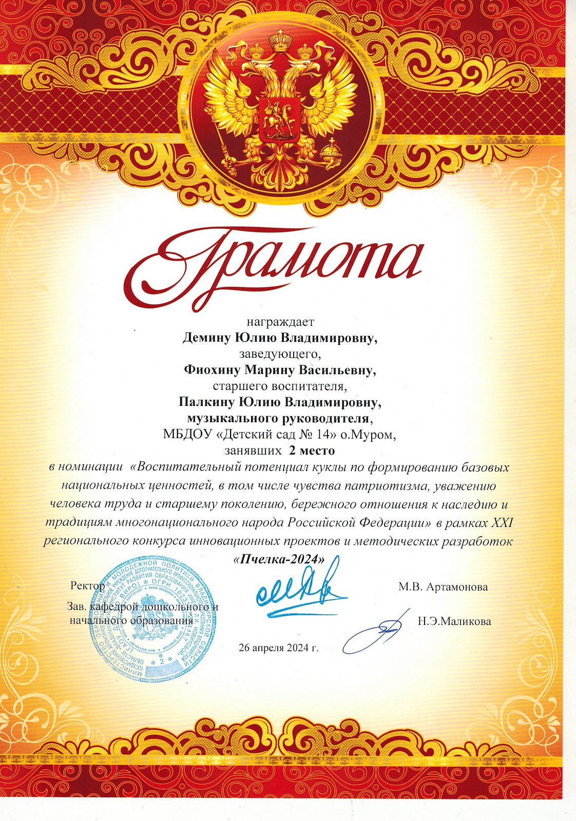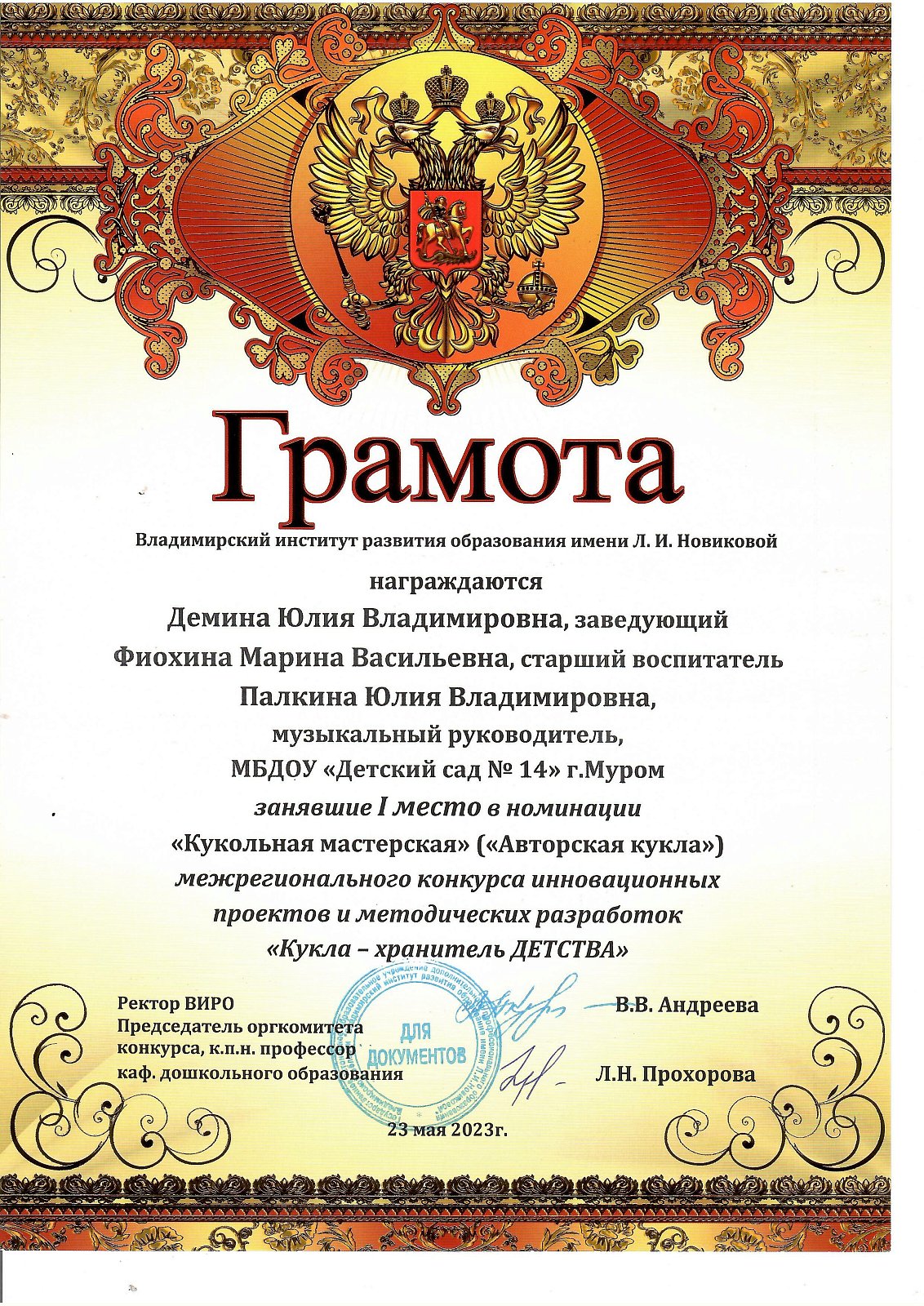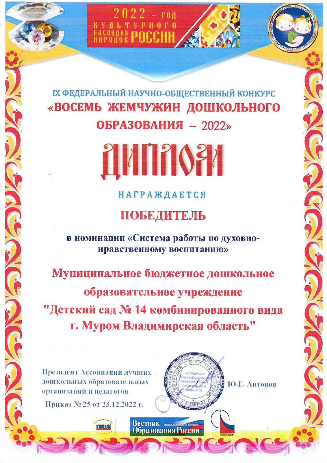 Наш детский сад имеет следующие грамоты и награды